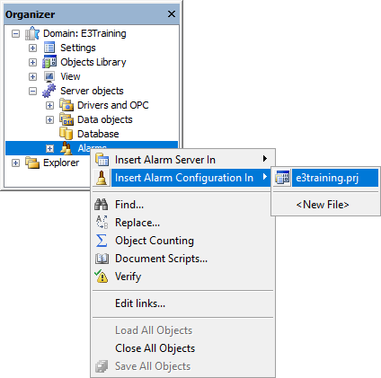 1.If not available yet, insert an Alarm Configuration object in the project.