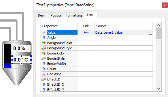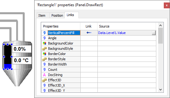 2.Repeat the procedure of the previous item for the second Rectangle object, linking the Value property to the Level2 Tag.