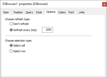 11.Click the Options tab, select the Refresh every (ms) option and type the value 1000.
