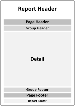 A Report may have multiple nested groups. Each group contains a Header Section and a Footer Section. A Header Section is printed right before any Detail Section in this group. A Footer Section is printed right after a Detail Section in this group |