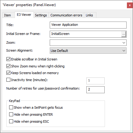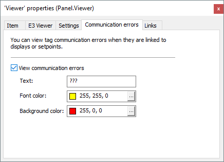 On the Communication Errors tab, users can define a pattern so that Displays and SetPoints of the whole application indicate communication errors.