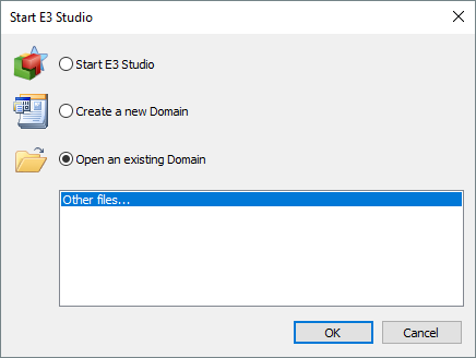 Opens an existing Domain among the last edited ones. By clicking Other files, users can browse for a Domain on a specific directory |