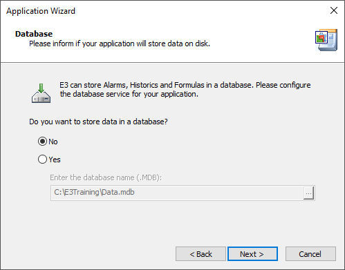 7.Answer No to the question Do you want to store data in a database?. This subject is addressed in a further chapter.