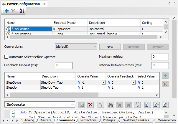 8.Open the configuration window of standard *TapPosition on Commands tab of Power Configuration object.